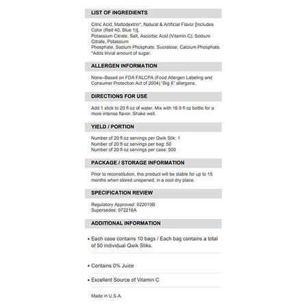 Sqwincher� Quik Stik� Zero Grape Electrolyte Replenishment Drink Mix-Oral Electrolyte Solution Sqwincher� Quik Stik� Zero Grape Flavor 0.11 oz. Electrolyte