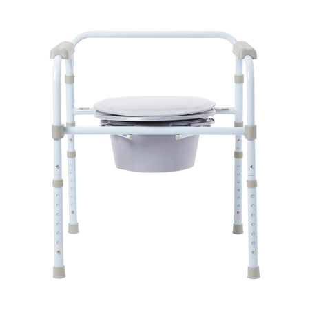 McKesson Folding, Fixed Arm, Steel Commode Chair, 17 � 23 Inch-3-in-1 Commode Chair McKesson Fixed Arms Steel Frame Back Bar 13-3/4 Inch Seat Width 350 lbs. Weight Capacity