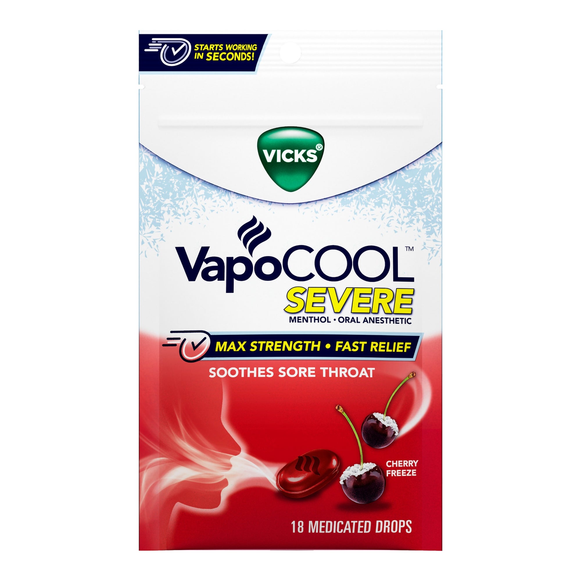 Vicks� VapoCool� Severe Medicated Drops, Cherry Freeze-Sore Throat Relief Vicks� VapoCOOL� 20 mg Strength Drop 18 per Bag