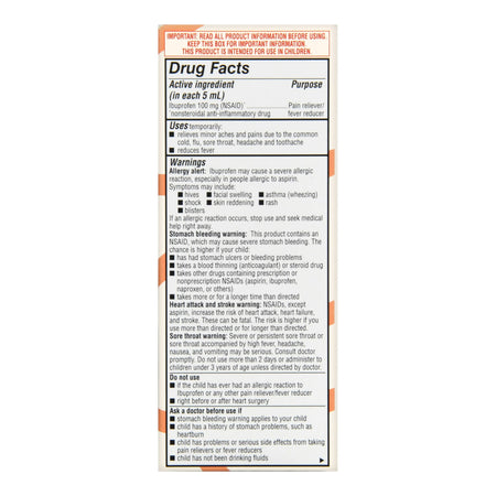 Foster & Thrive� Children's Ibuprofen 100 mg pr 5 mL Oral Suspension (NSAID) Original Berry-Children's Pain Relief Foster & Thrive� 100 mg / 5 mL Strength Ibuprofen Oral Suspension 4 oz.