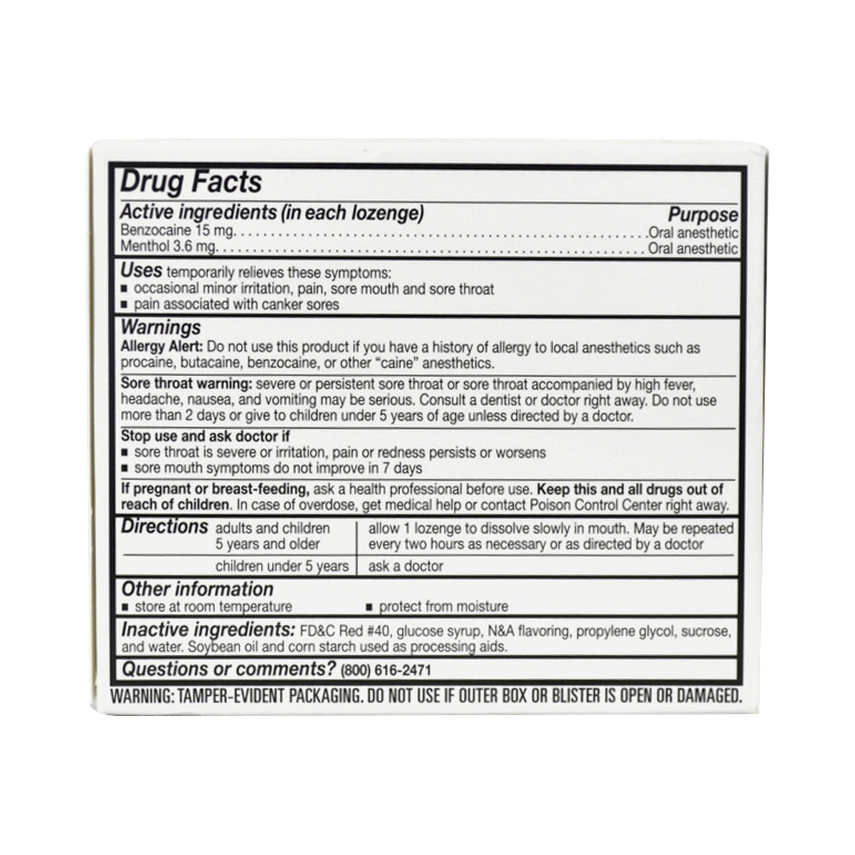 Major� Benzocaine / Menthol Sore Throat Relief-Sore Throat Relief Major� 15 mg - 4 mg Strength Lozenge 18 per Box