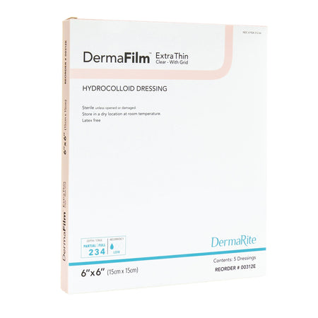 DermaFilm� Thin with Border Hydrocolloid Dressing, 6 x 6 Inch-Thin Hydrocolloid Dressing DermaFilm� Film Backing 6 X 6 Inch Square Hydrocolloid / Film