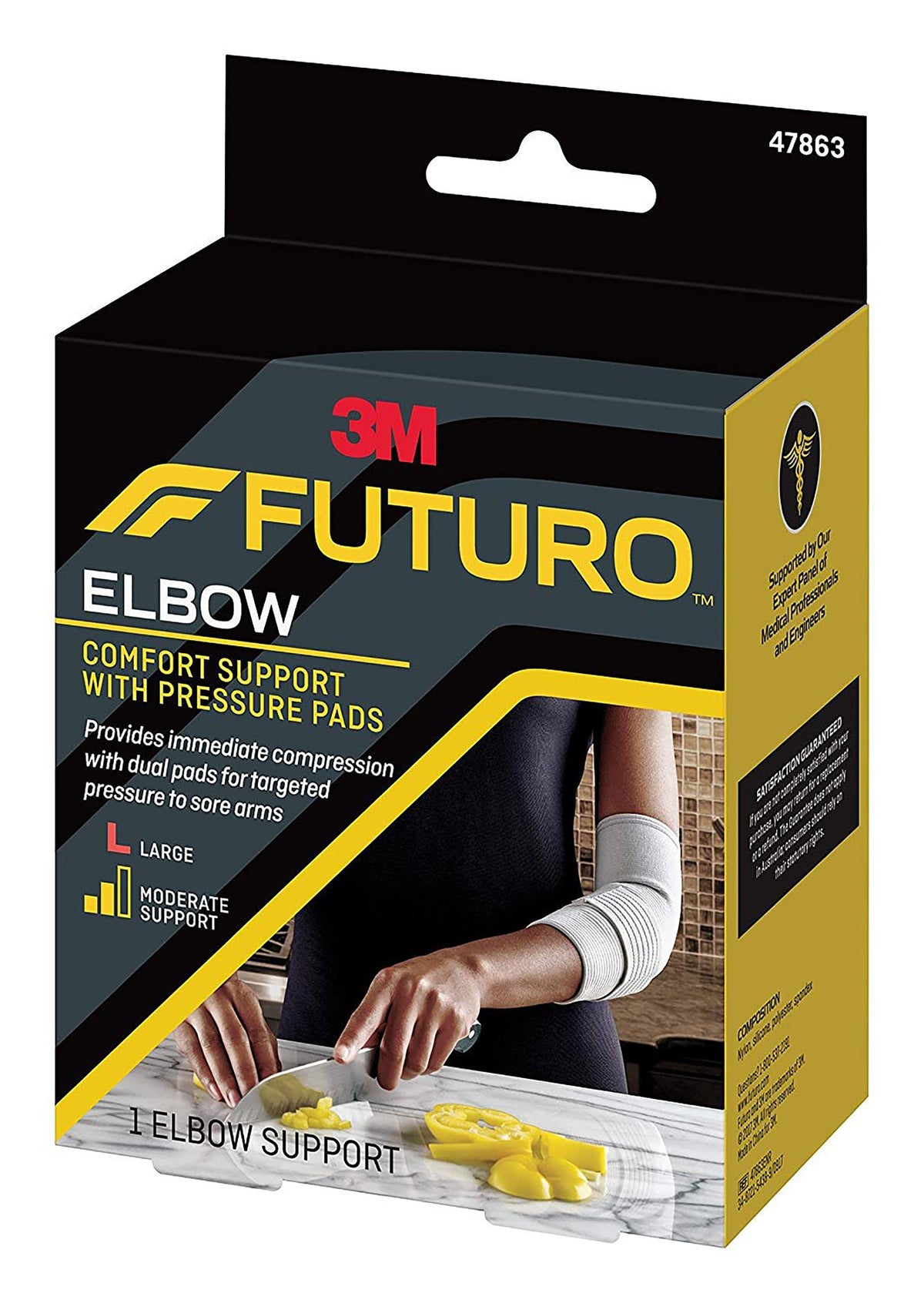 - 3M™ Futuro™ Elbow Support provides relief to sore elbows and forearms
